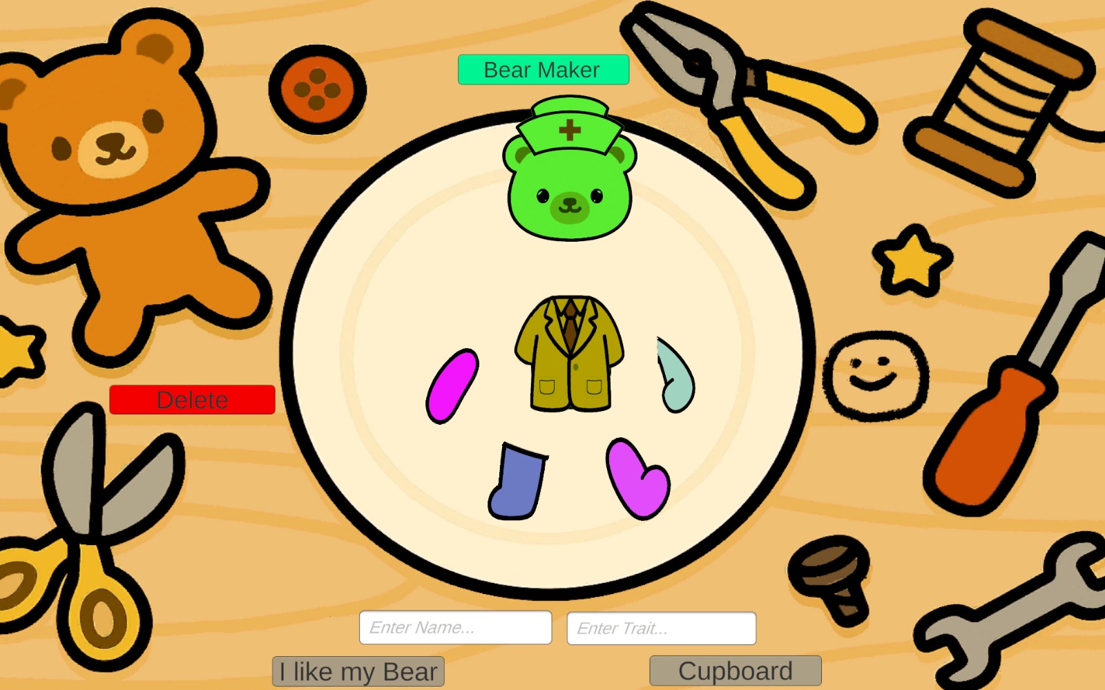 Fuzzy Forge is a calm, creative sandbox where you build your own teddy bears by mixing and matching different heads, bodies, arms, legs. Every bear is unique from its colors to its personality. Give them a name, choose their traits, and save your creations to your personal Cupboard, where you can revisit and admire your growing collection all the time